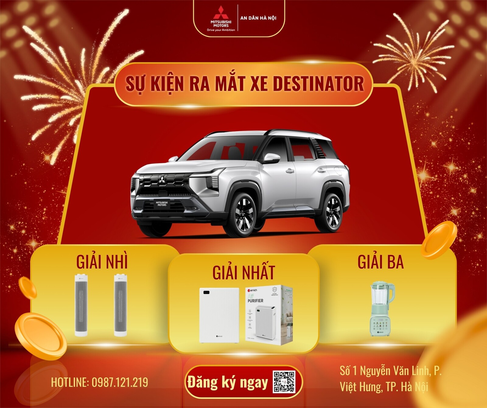 Sự kiện ra mắt mẫu SUV 7 chỗ hoàn toàn mới Mitsubishi DESTINATOR sẽ chính thức diễn ra vào 08:30 – 12:00, Thứ Bảy ngày 06/12/2025.