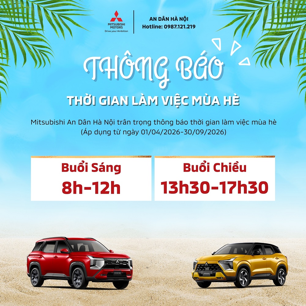 Nhằm phục vụ Quý khách tốt hơn trong mùa hè, Mitsubishi An Dân Long Biên điều chỉnh khung giờ làm việc như sau: